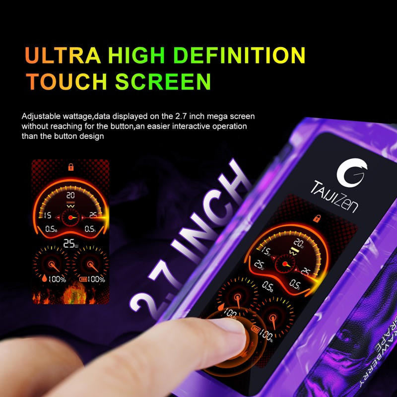 • 2.7-inch high-def touchscreen provides clear, real-time information on settings, battery status, and coil performance.