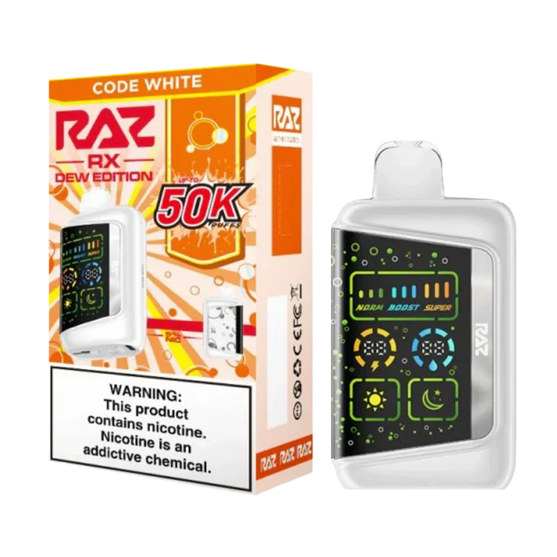 Code White – RAZ RX50K is a high-capacity disposable vape engineered for longevity and precise control, perfect for vapers who want extended sessions without compromising flavor. This rechargeable, compact device blends power, customization, and a refined citrus-forward profile into a single portable system.