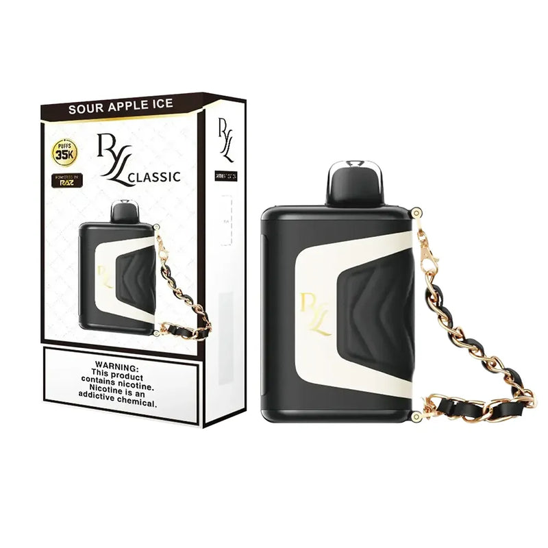 Meet Sour Apple Ice - RYL Classic 35K by RAZ, a high-capacity disposable vape designed for flavor lovers who want long-lasting performance without refills. This device delivers bold, refreshing Sour Apple Ice flavor with convenient, draw-activated operation.
